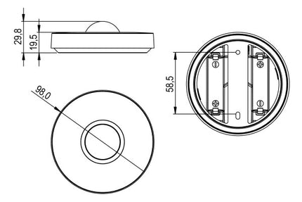 - hoher Erfassungsbereich mit einem Erfassungswinkel von 360° horizontal und 110° vertikal (ergibt 8m Erfassungsdurchmesser bei 3m Deckenhöhe bzw. 18m Erfassungsdurchmesser bei 10m Deckenhöhe)